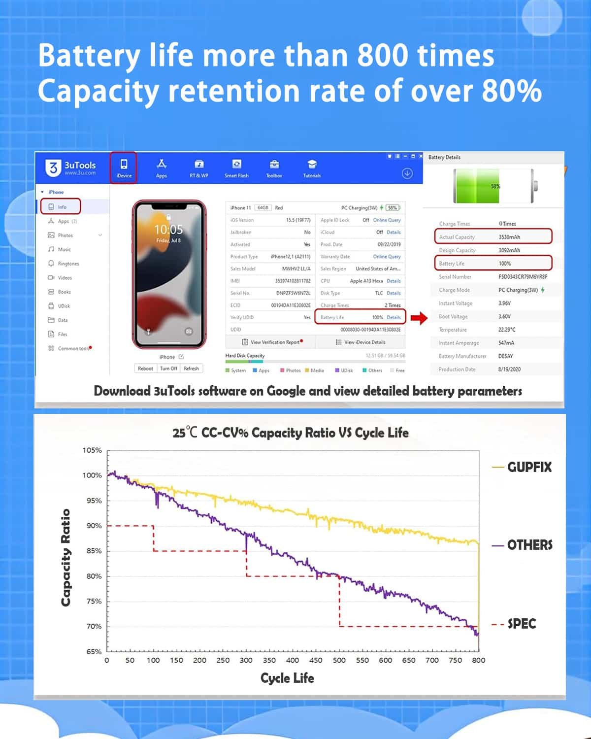 The GUPFIX Diagnostic Battery delivers a perfect balance of safety, reliability, and innovation—restoring your iPhone 13 Pro to its peak performance without compromising system integrity.