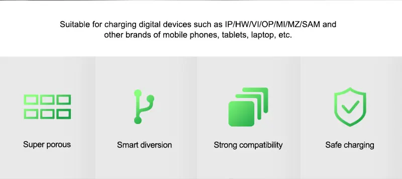 Suitable for charging digital devices such as IP/HW/VI/OP/MI/MZ/SAM and other brands of mobile phones and tablets