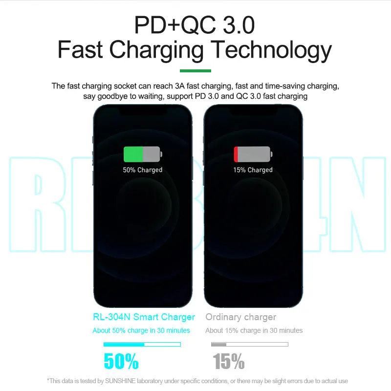 The fast charging socket can reach 3A fast charging, fast and time-saving charging, say goodbye to waiting, support PD 3.0 and QC 3.0 fast charging