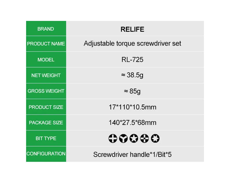 RELIFE RL-725 6-in-1 adjustable torque screwdriver