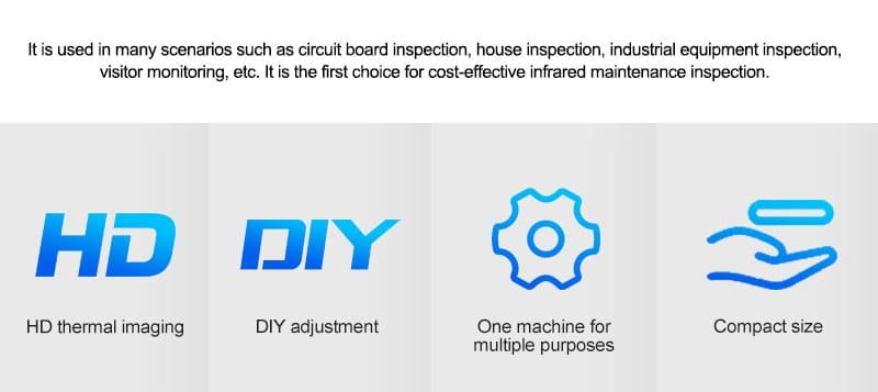 2.It is used in many scenarios such as circuit board inspection, house inspection, industrial equipment inspection, visitor monitoring, etc. It is the first choice for cost-effective infrared maintenance inspection.