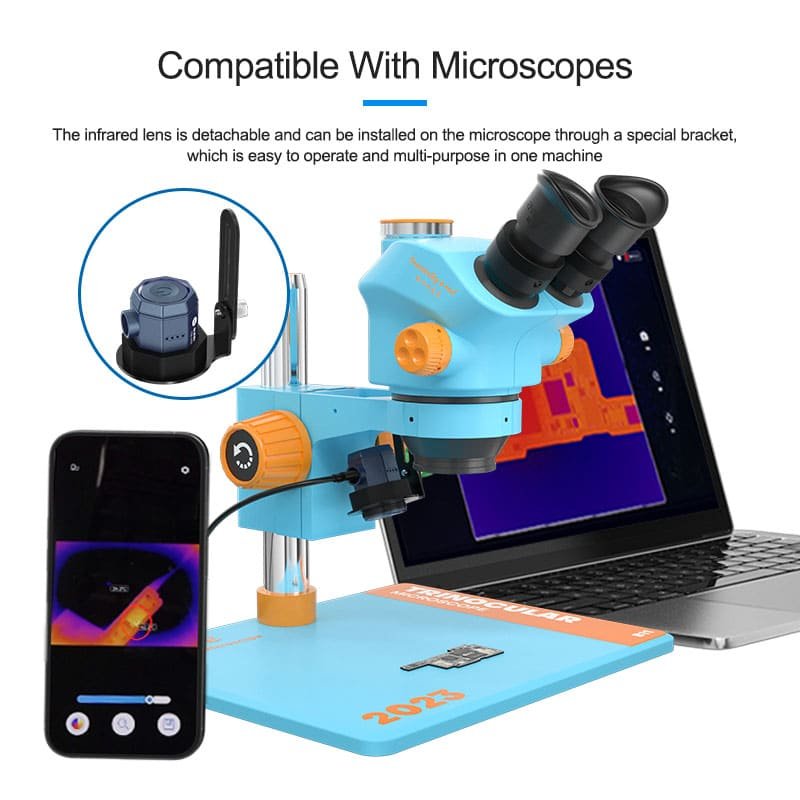 1.The clip-on infrared thermal imaging device is compact and easy to use. It has the ultimate optimized image algorithm and can quickly locate faulty components such as PCB short circuits and leakage.