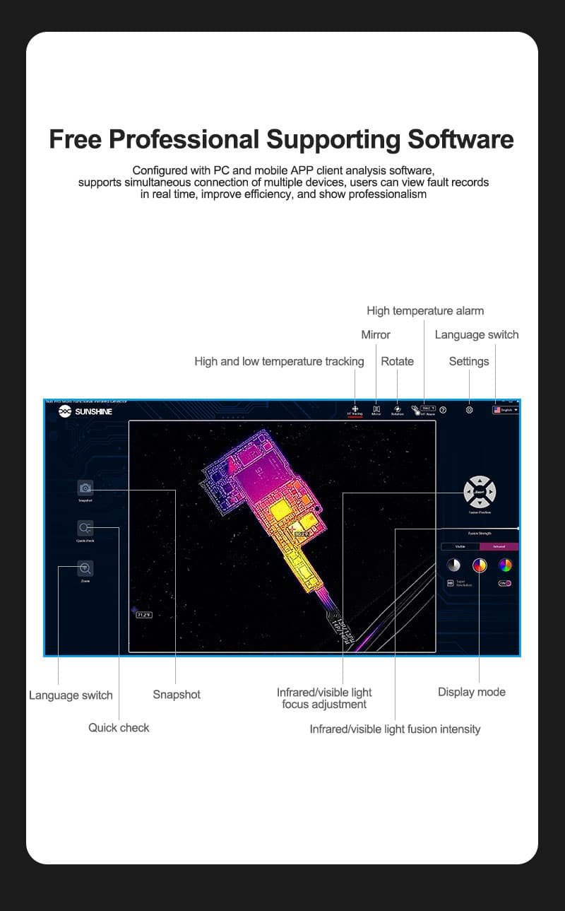 SUNSHINE Infrared Thermal Camera Dual-light Direct Connection Infrared PCB BGA Motherboard Maintenance Thermal Imaging
