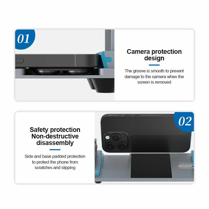 2.3-in-1 design structure, the screen can be disassembled directly without heating, safe and fast, when the glass back cover is down, it is used to disassemble the screen, when the glass back cover is up, it is used to remove the back cover glass.
