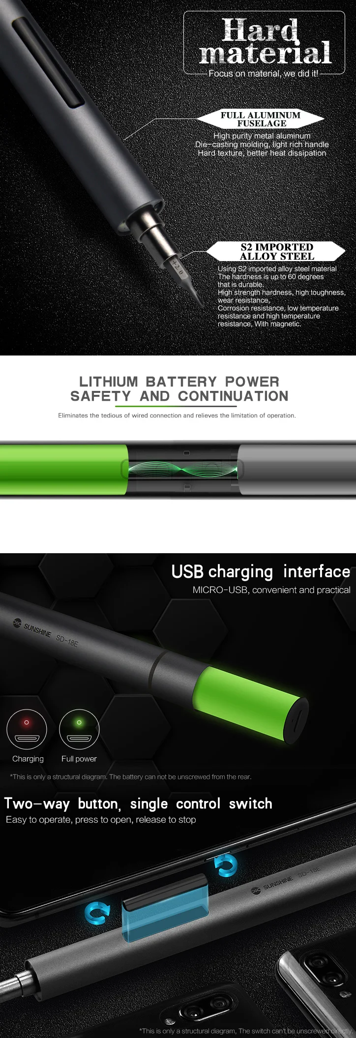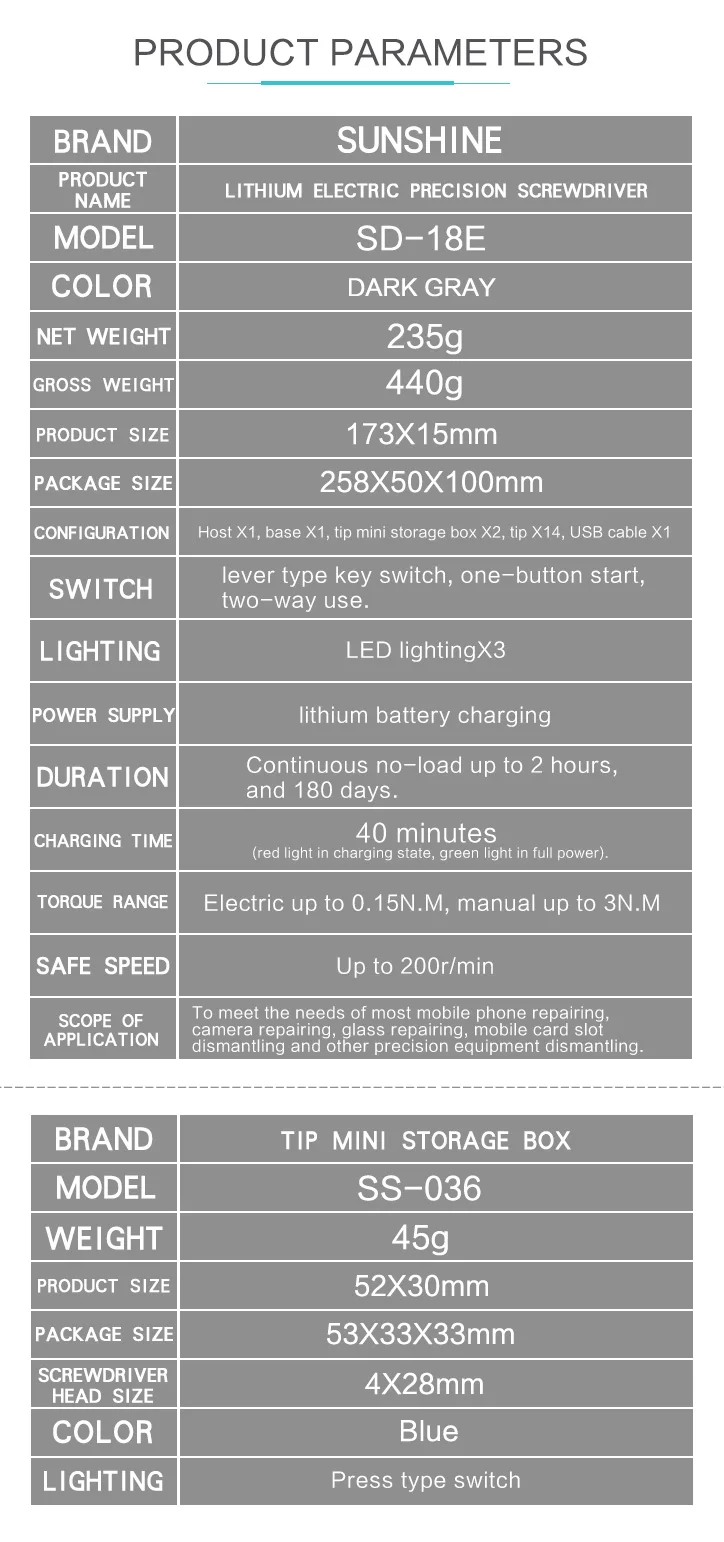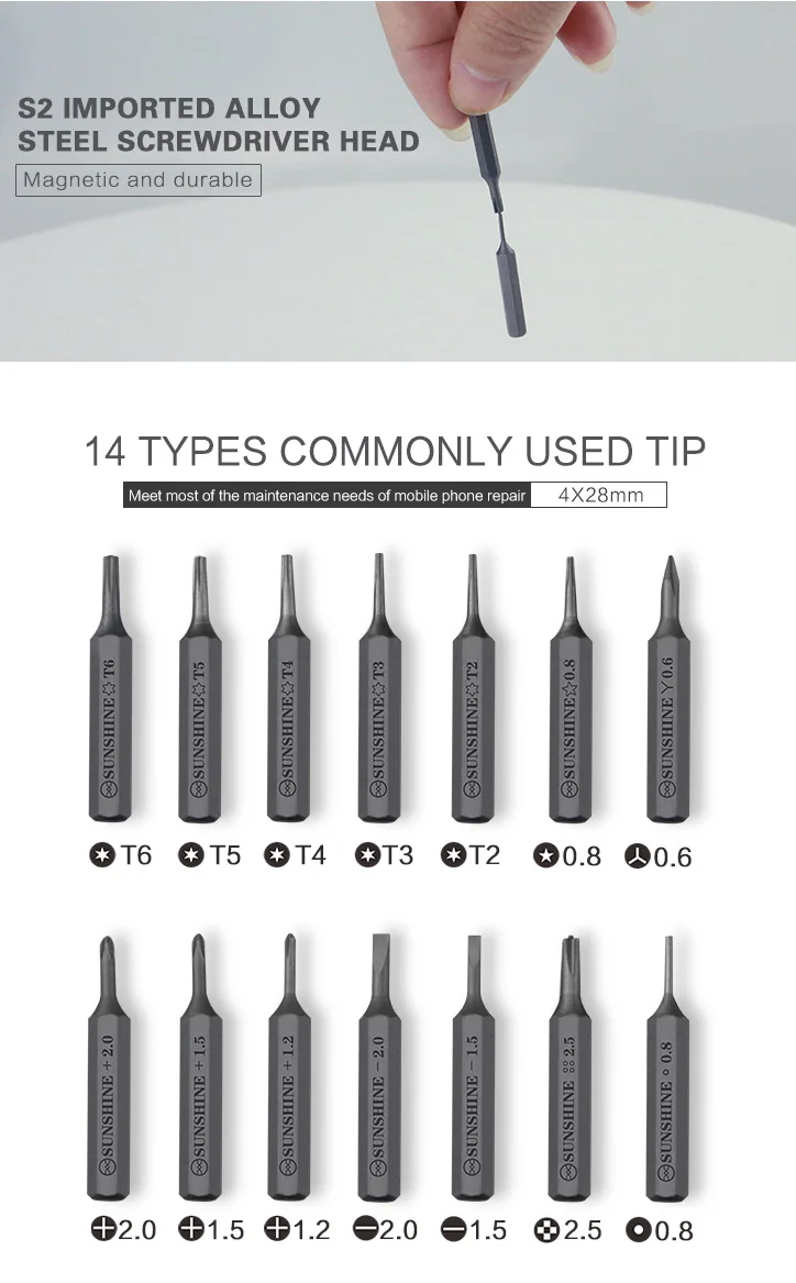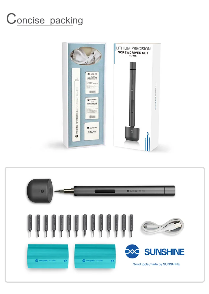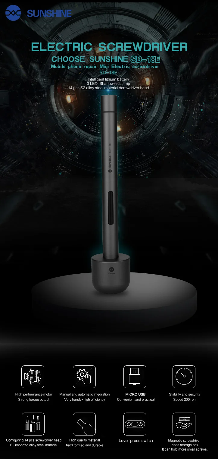 Sunshine SD-18E Electric Screwdriver Set S2 Alloy Steel with Mini Screwdriver Storage Box for iPhone iPad Camera Table Repair