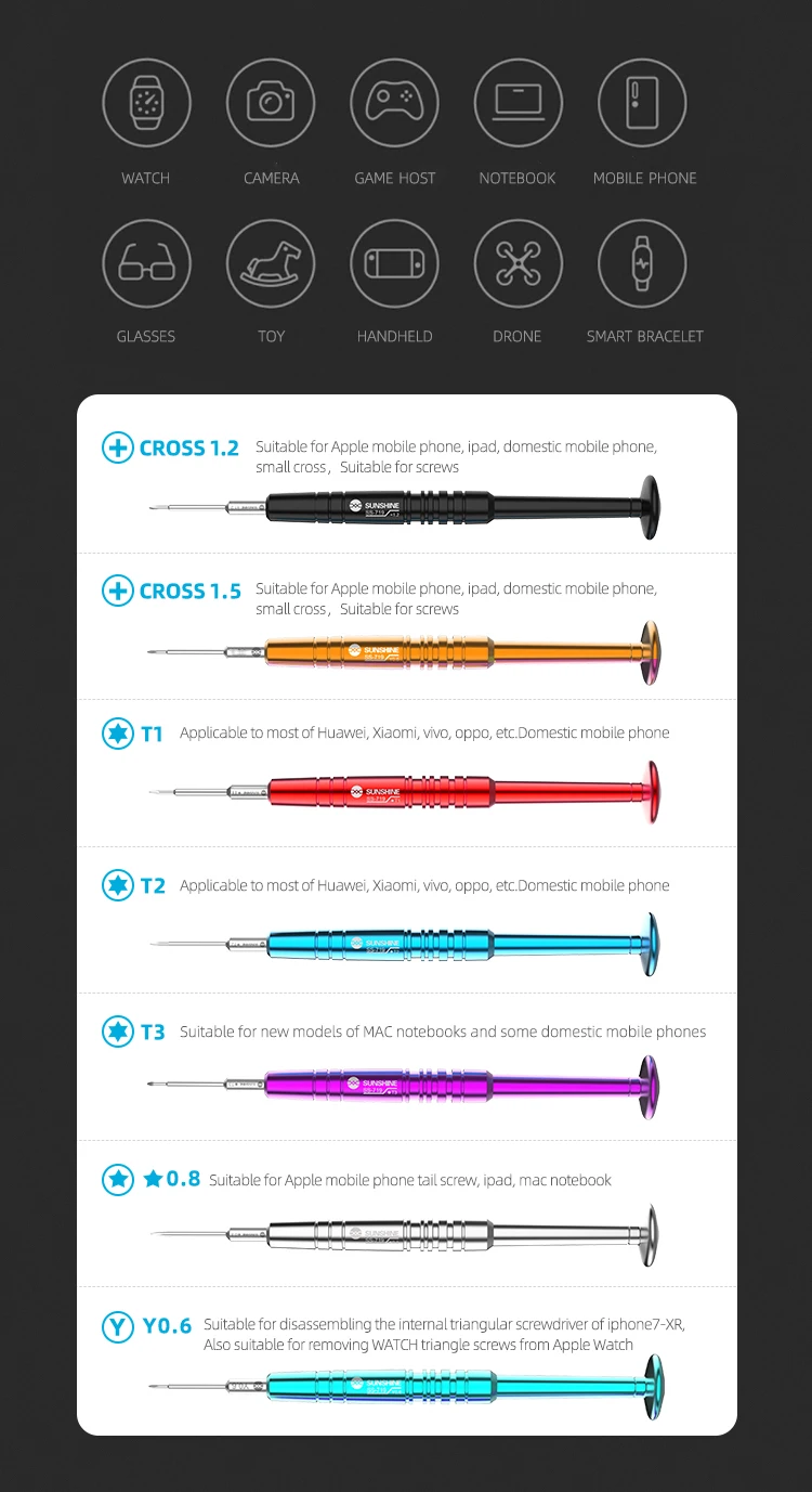 SUNSHINE SS-719 Precise Magnetic Screwdriver for Mobile Phone Repair Cross T2 Screwdrivers Maintenance Tools